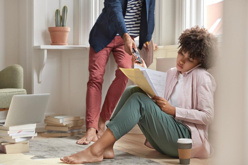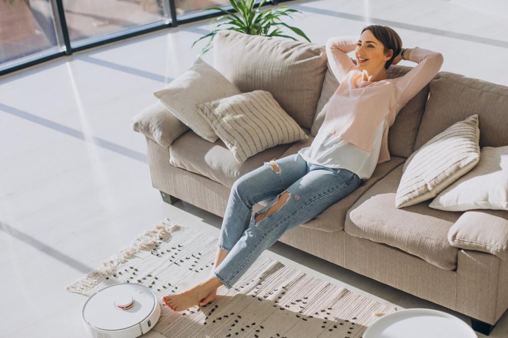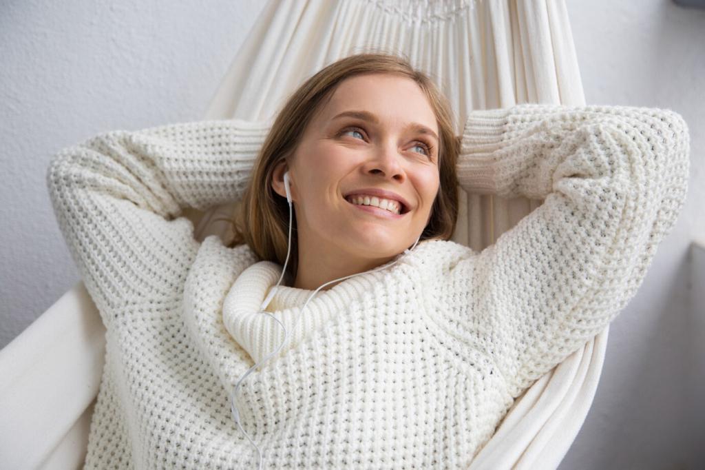 Leinen atmet, Wolle wärmt, Baumwolle verbindet. Schichten Sie dünn statt schwer. Haptik ersetzt Muster. Erzählen Sie, wie sich Ihr Wohnzimmer anfühlt, nachdem Sie Vorhänge, Plaids und Kissen reduziert haben.